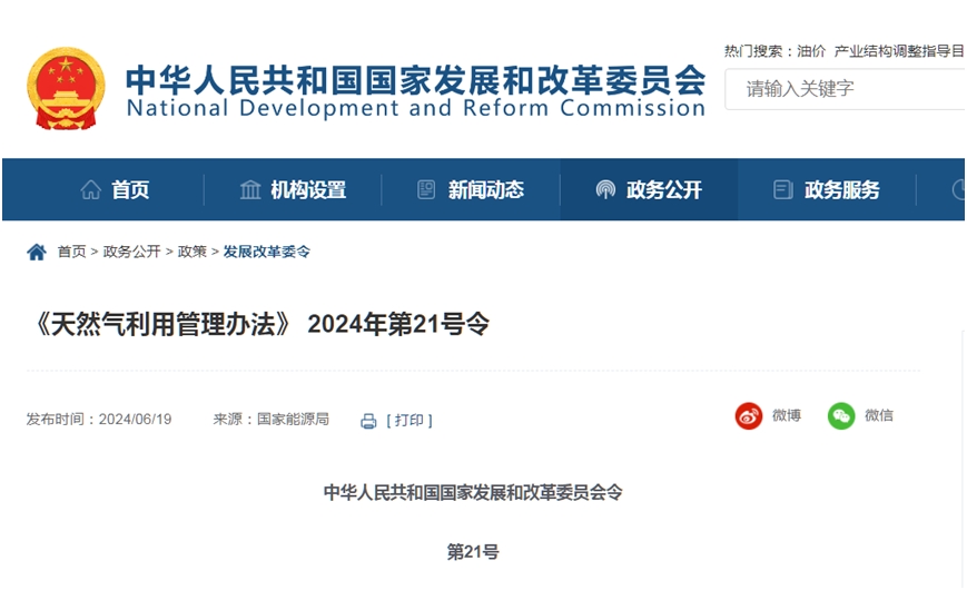 《天然气利用管理办法》已经2024年5月29日第12次委务会审议通过,现予公布,自2024年8月1日起施行。